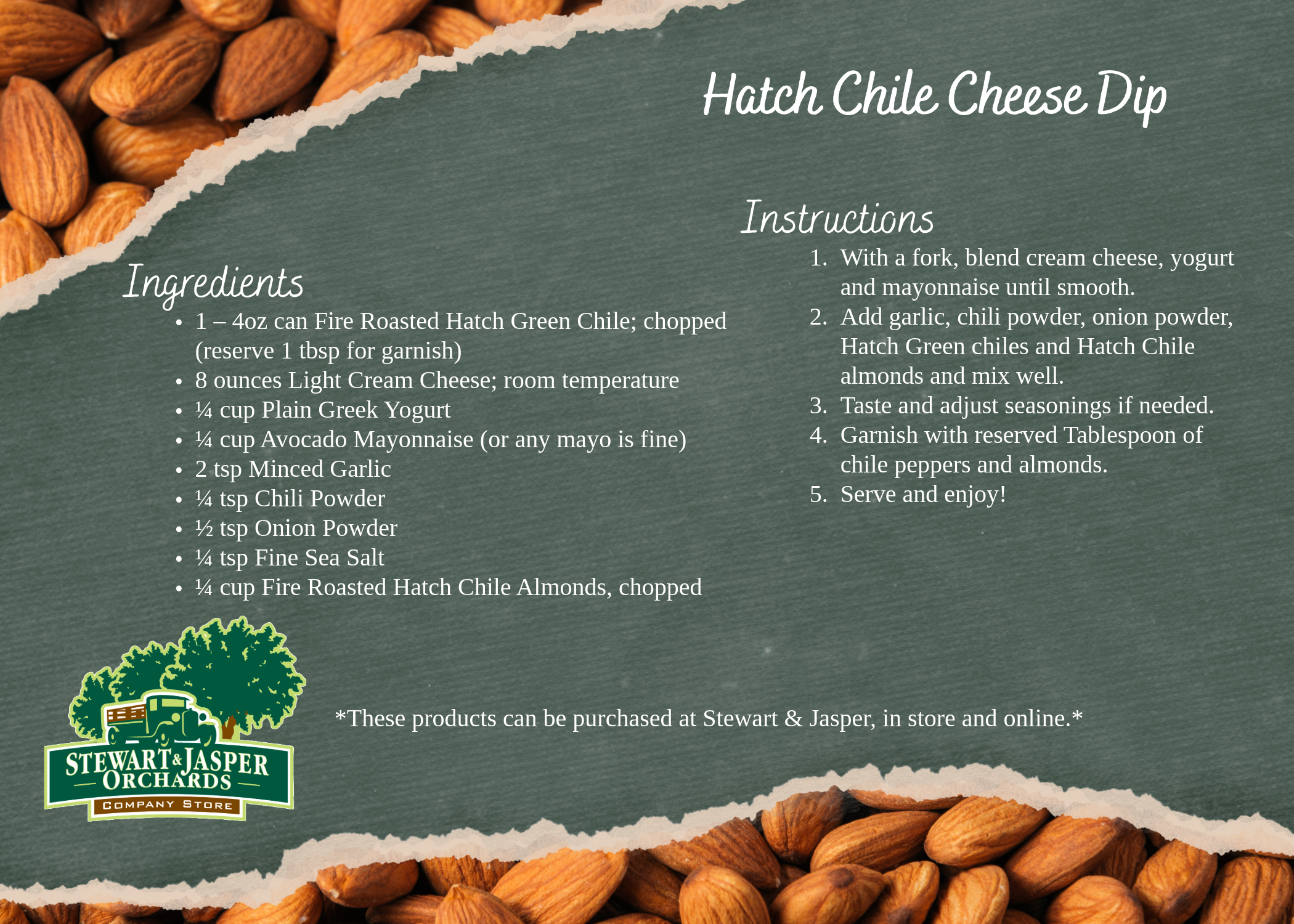Creamy, zesty, and irresistibly bold—this Hatch Chile Cheese Dip gets a flavor boost from smoky, fire-roasted Hatch chile almonds. Melted cheeses swirl together with roasted Hatch chiles for a rich, gooey base, while the chopped almonds add a surprising crunch and a punch of chile-kissed nuttiness. Perfectly balanced with heat, creaminess, and texture, it’s the kind of dip that keeps everyone reaching back for more chips.